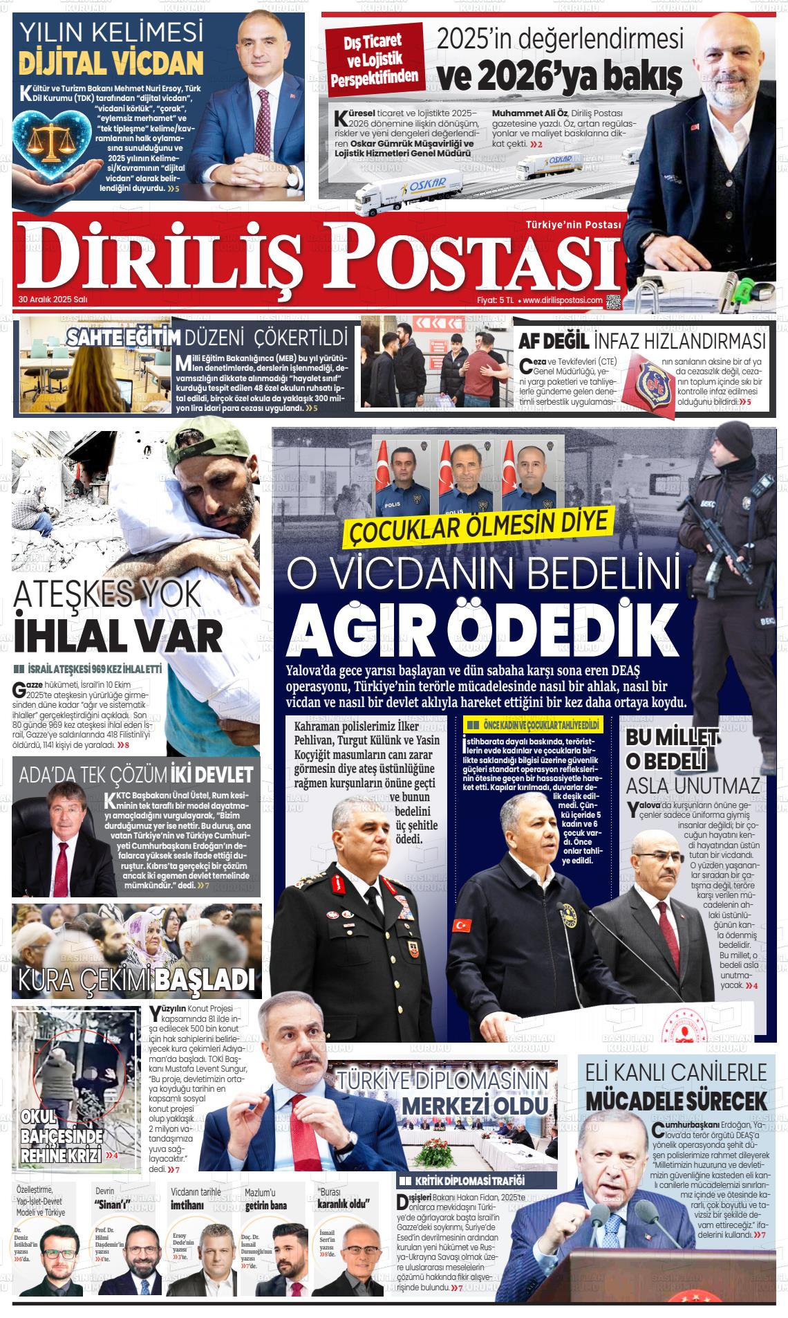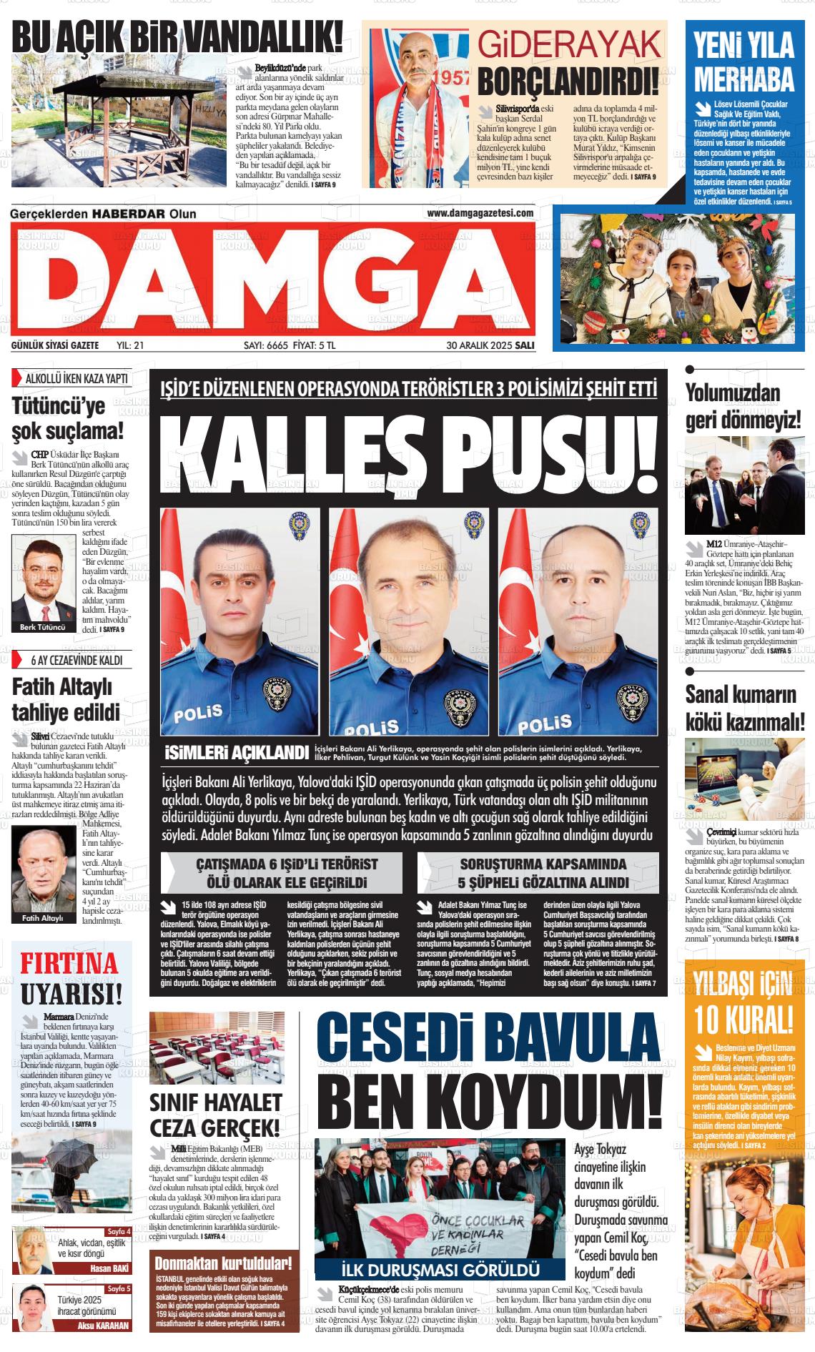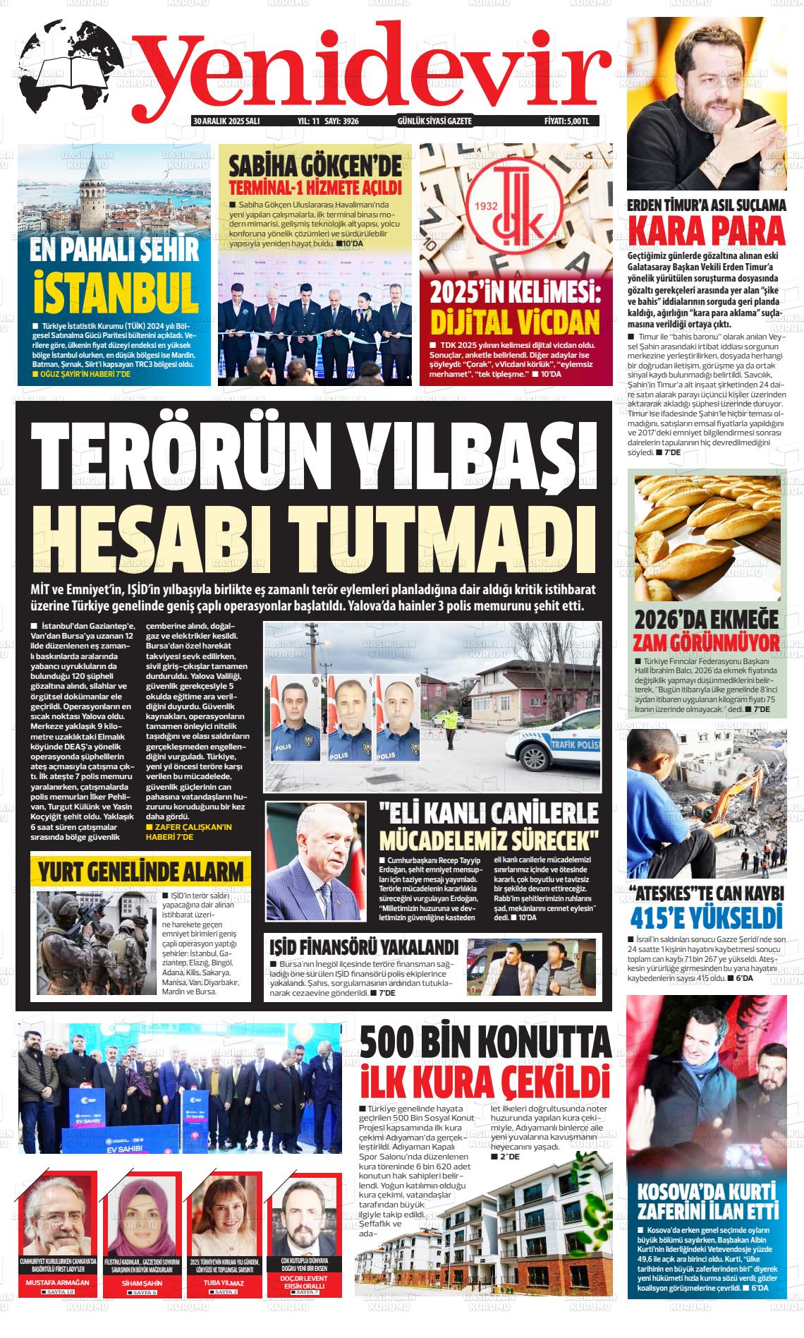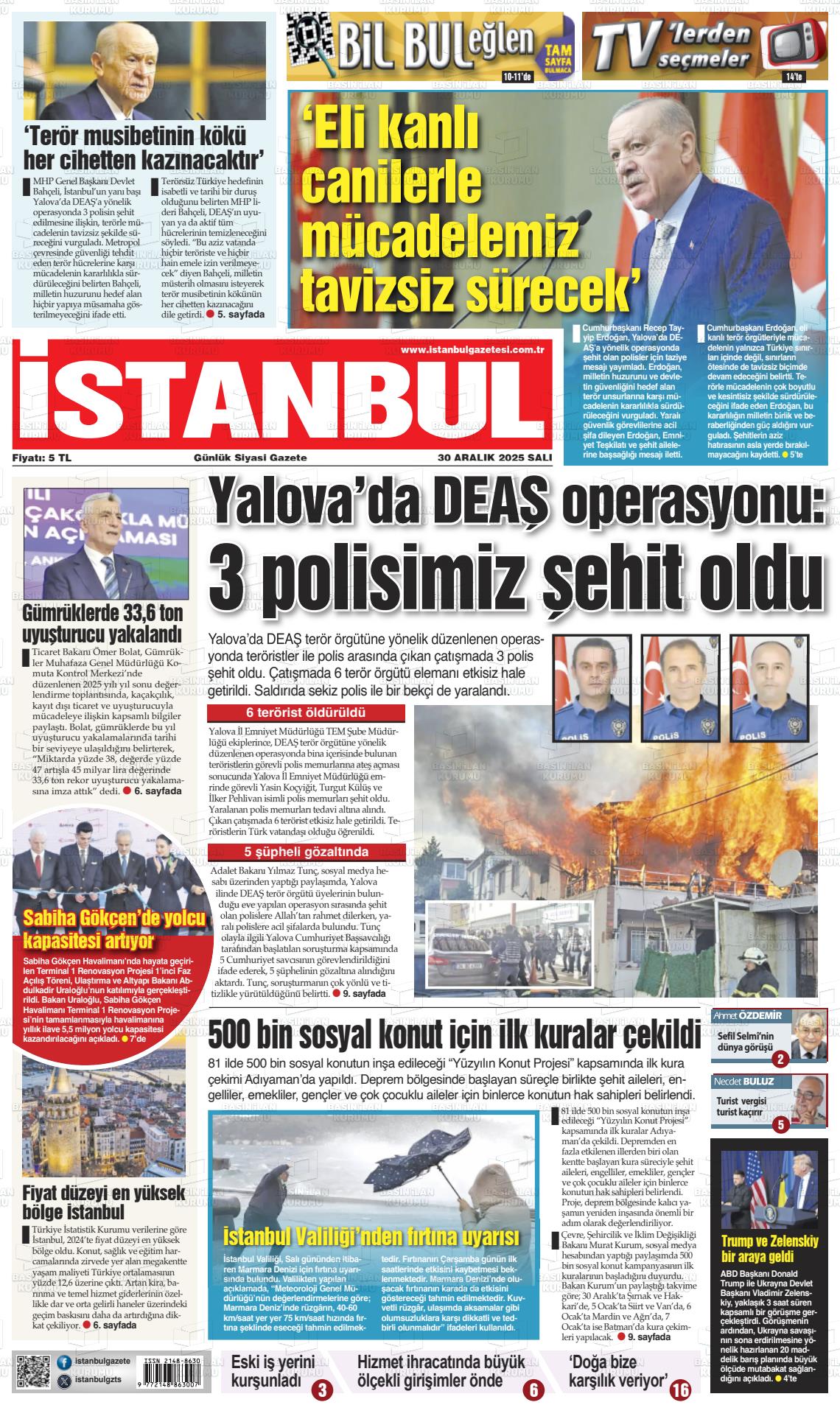 İstanbul Yerel Gazeteleri 30 Aralık 2025, Salı Günü Manşeti