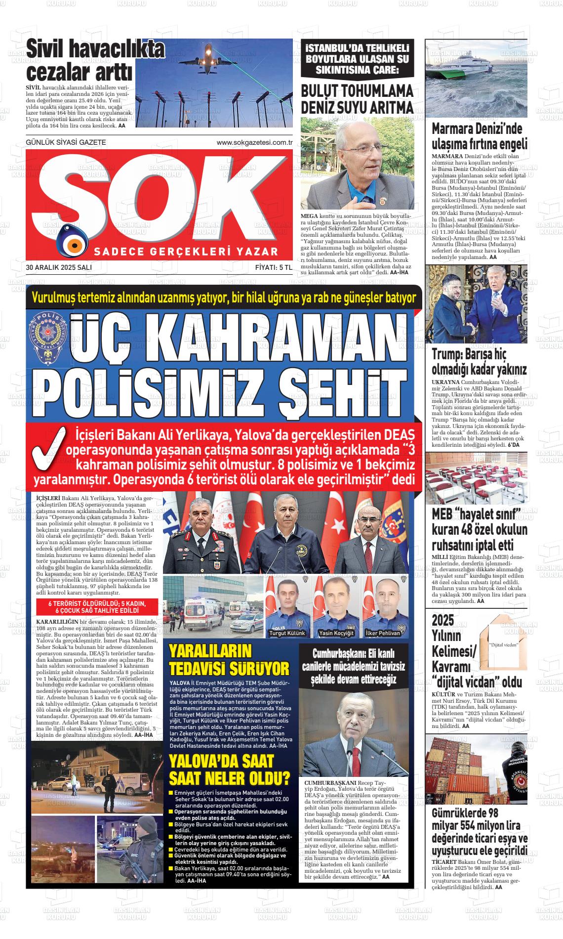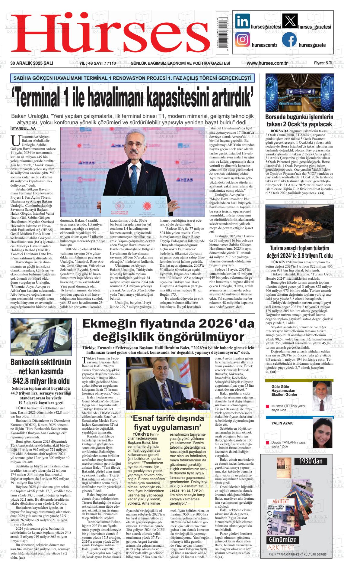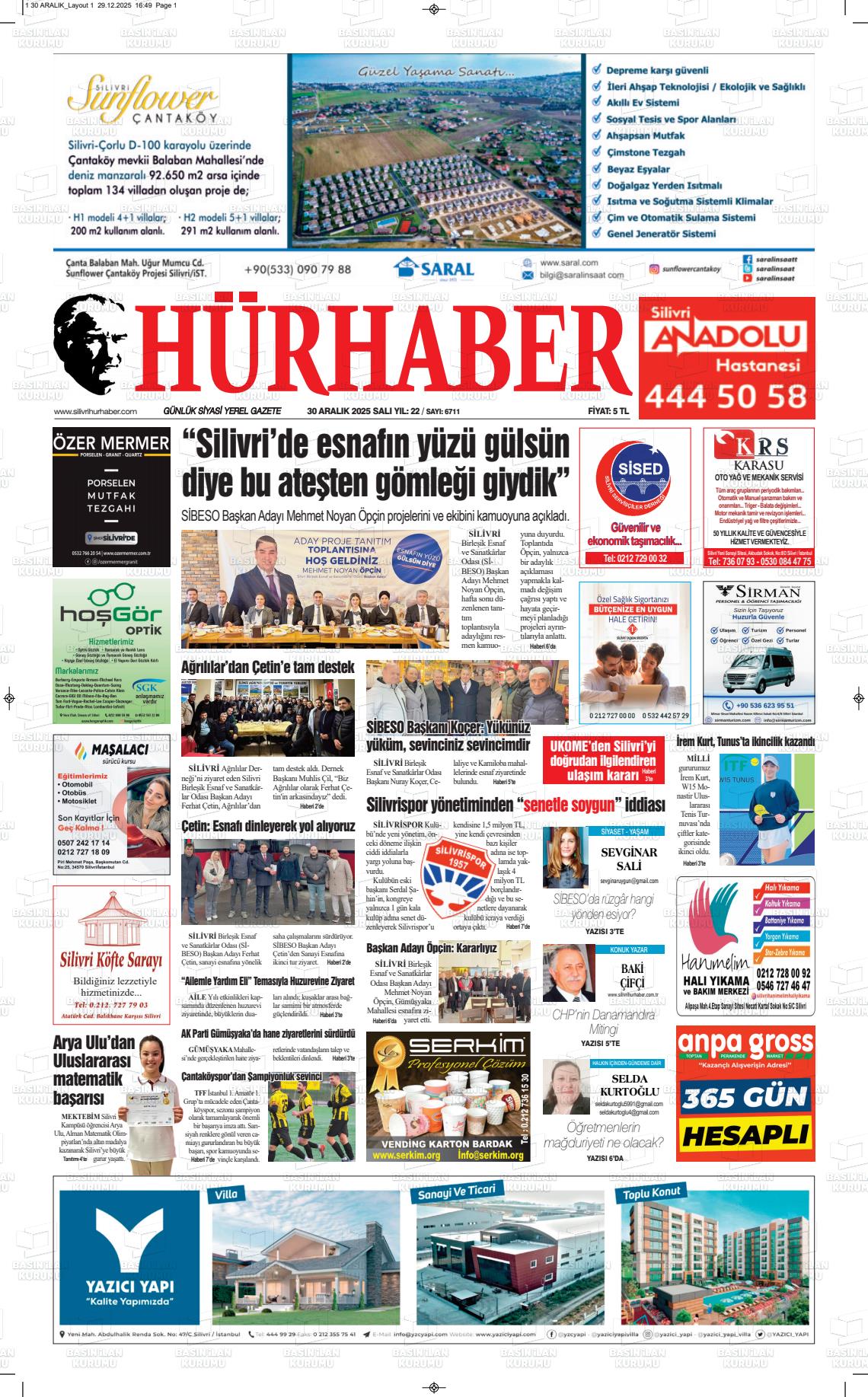 İstanbul Yerel Gazeteleri 30 Aralık 2025, Salı Günü Manşeti