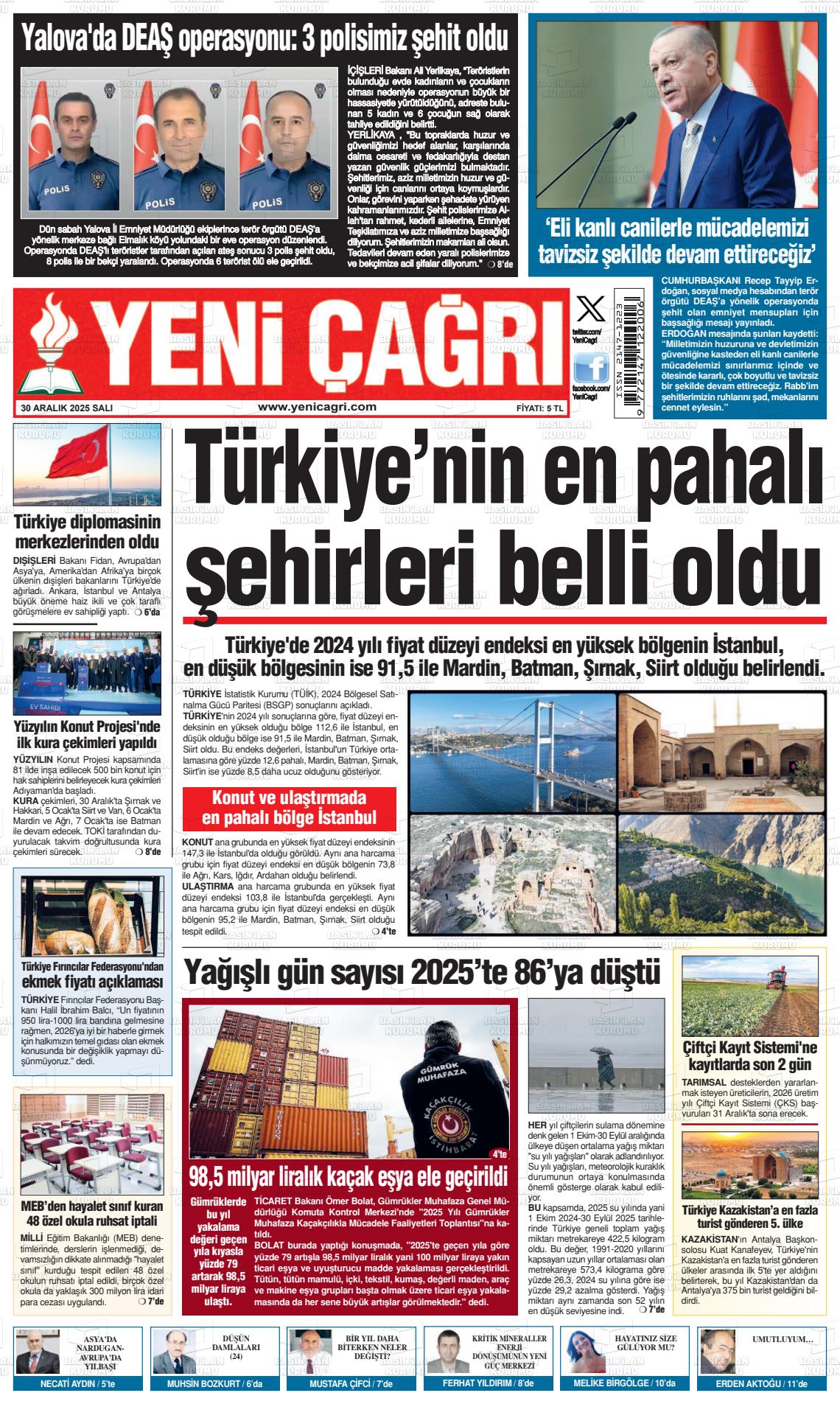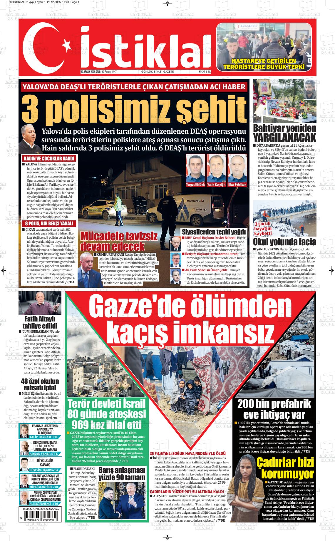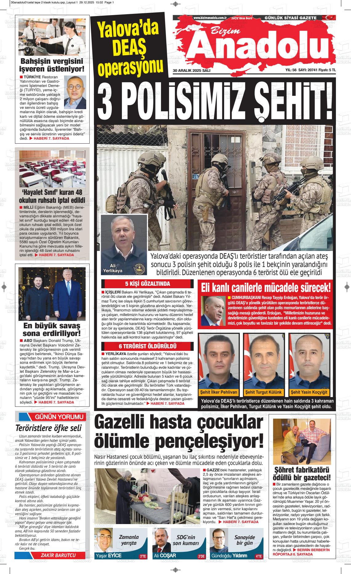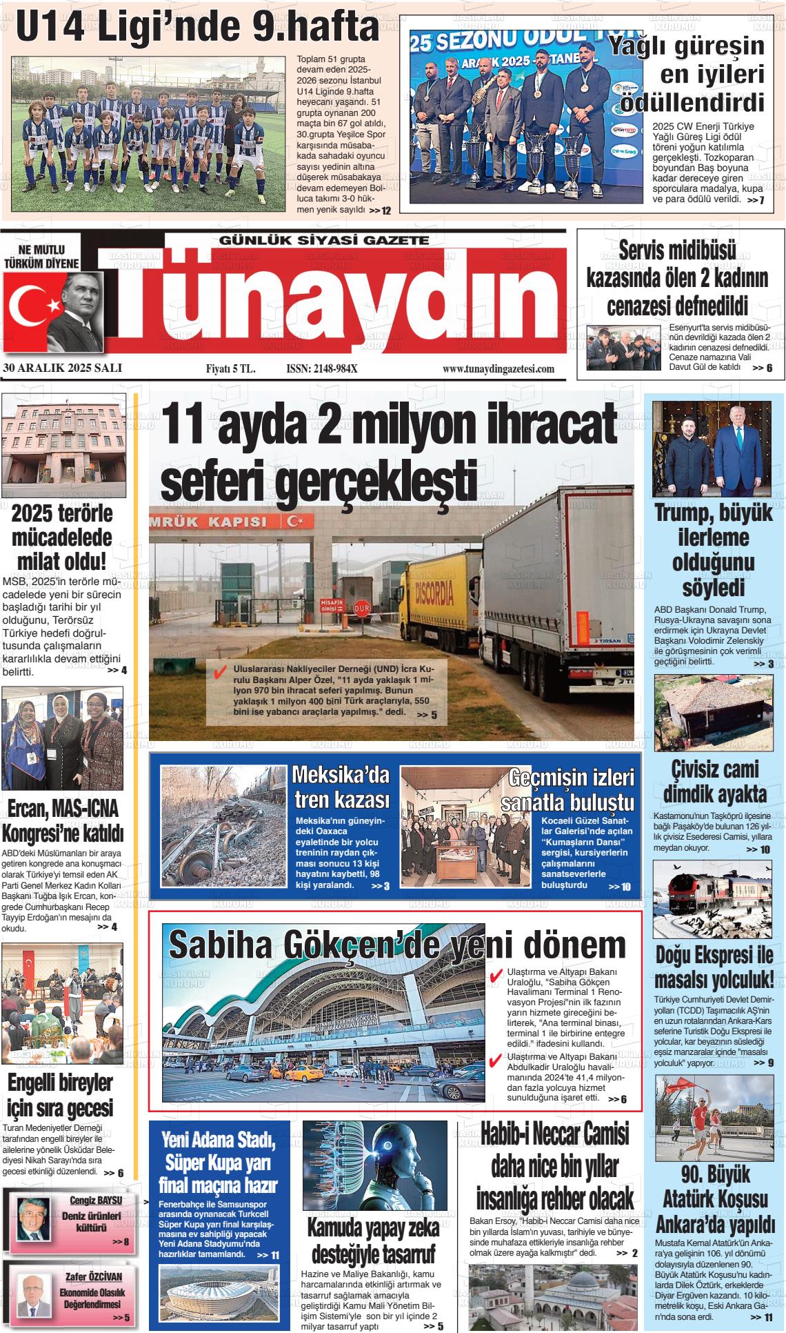 İstanbul Yerel Gazeteleri 30 Aralık 2025, Salı Günü Manşeti
