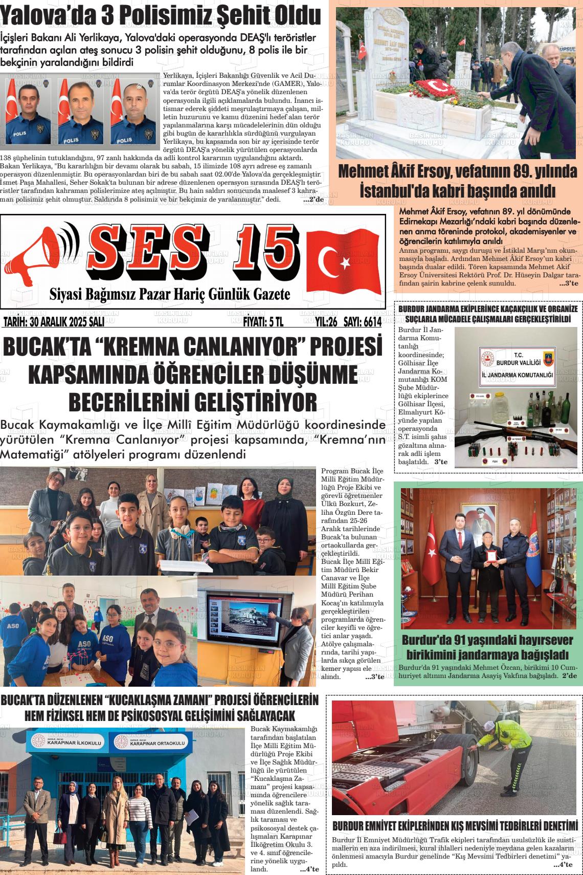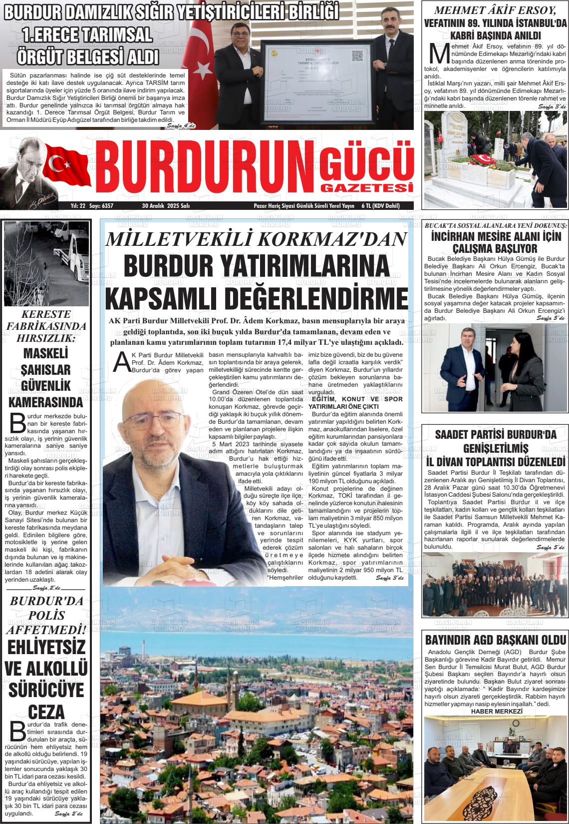 Burdur Yerel Gazeteleri 30 Aralık 2025, Salı Günü Manşeti