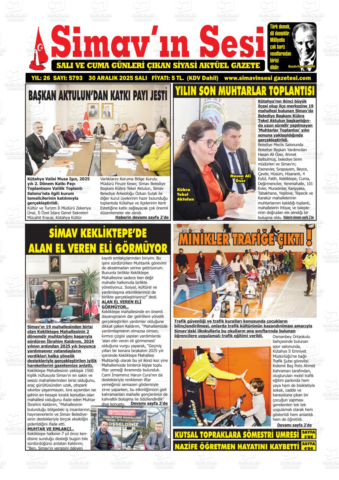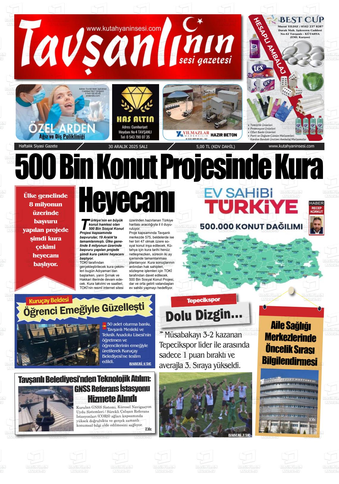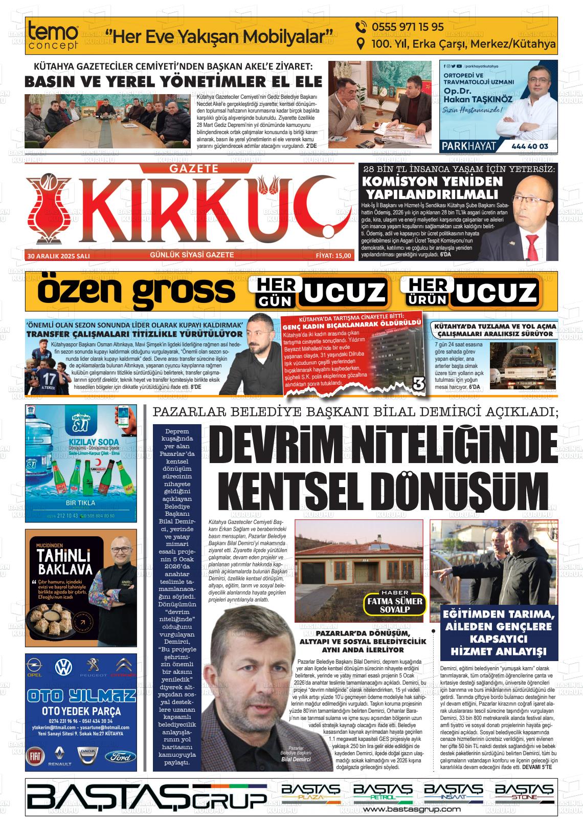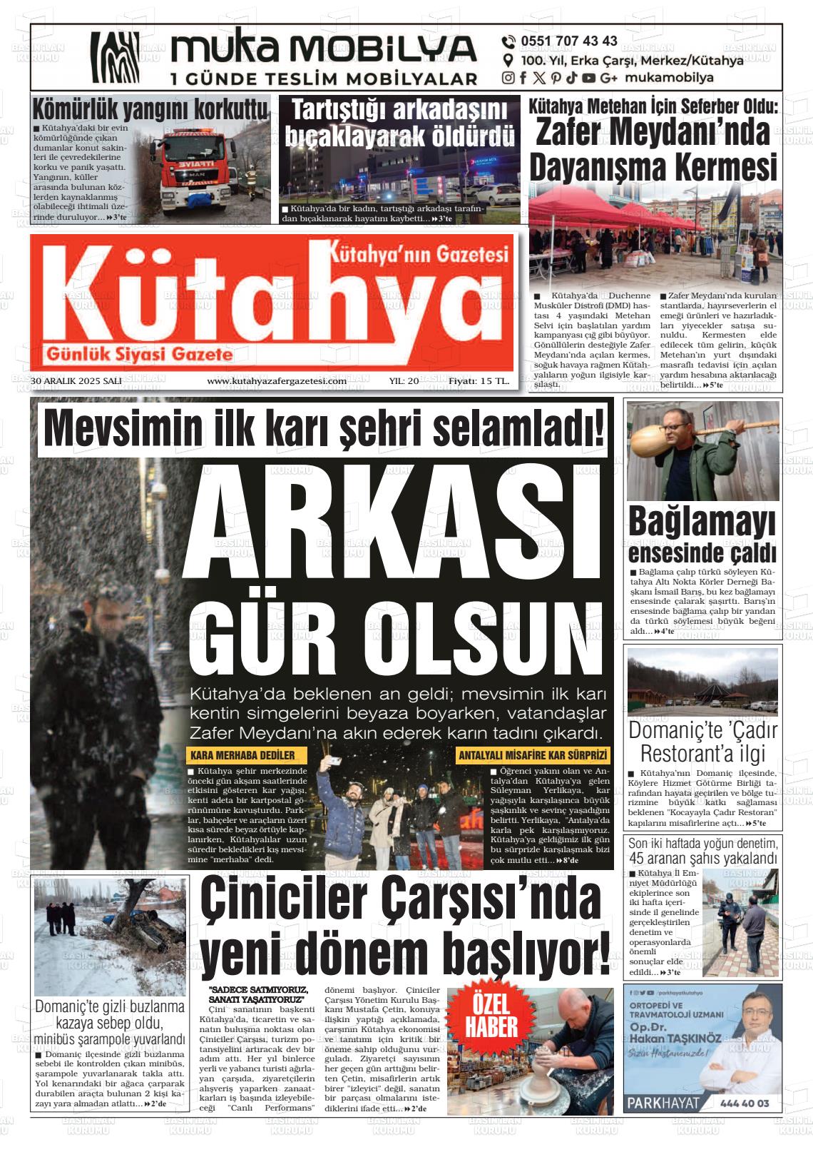 Kütahya Yerel Gazeteleri 30 Aralık 2025, Salı Günü Manşeti