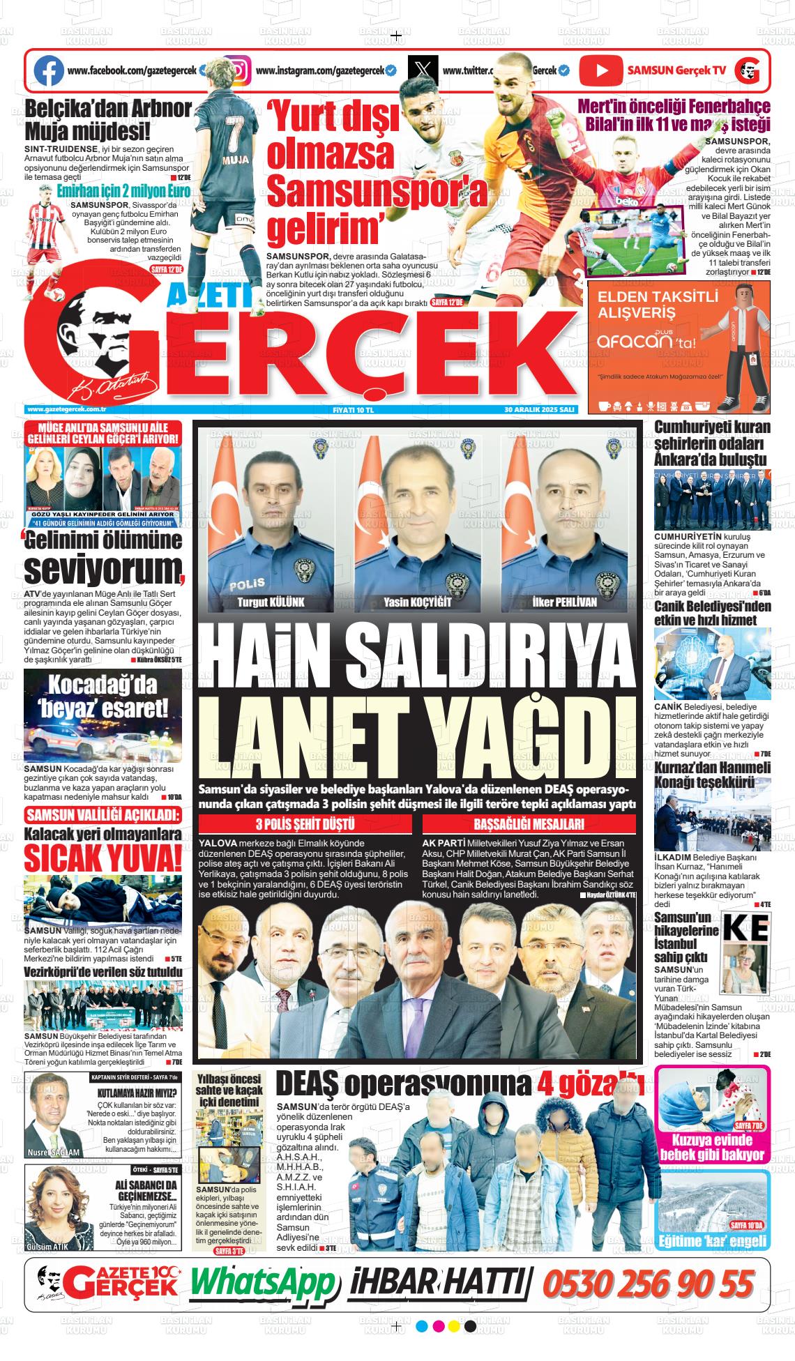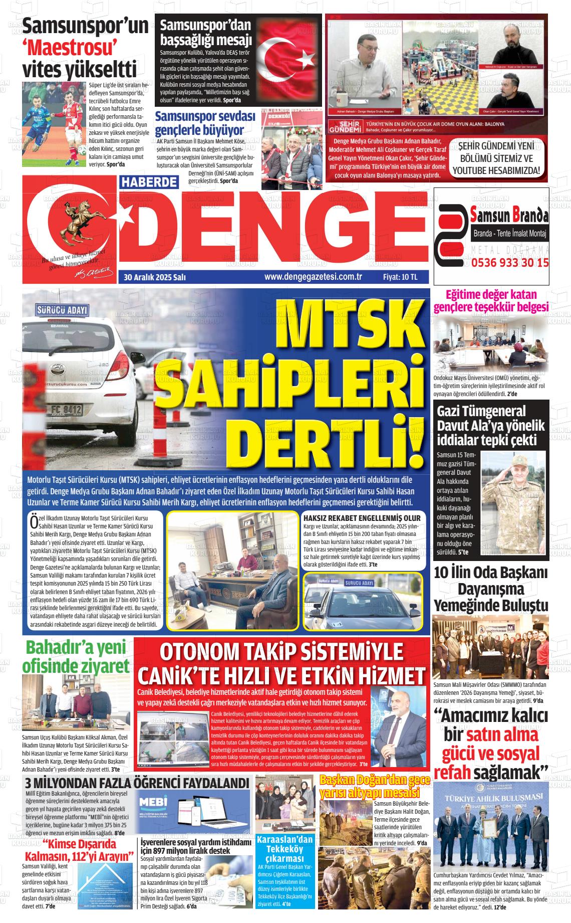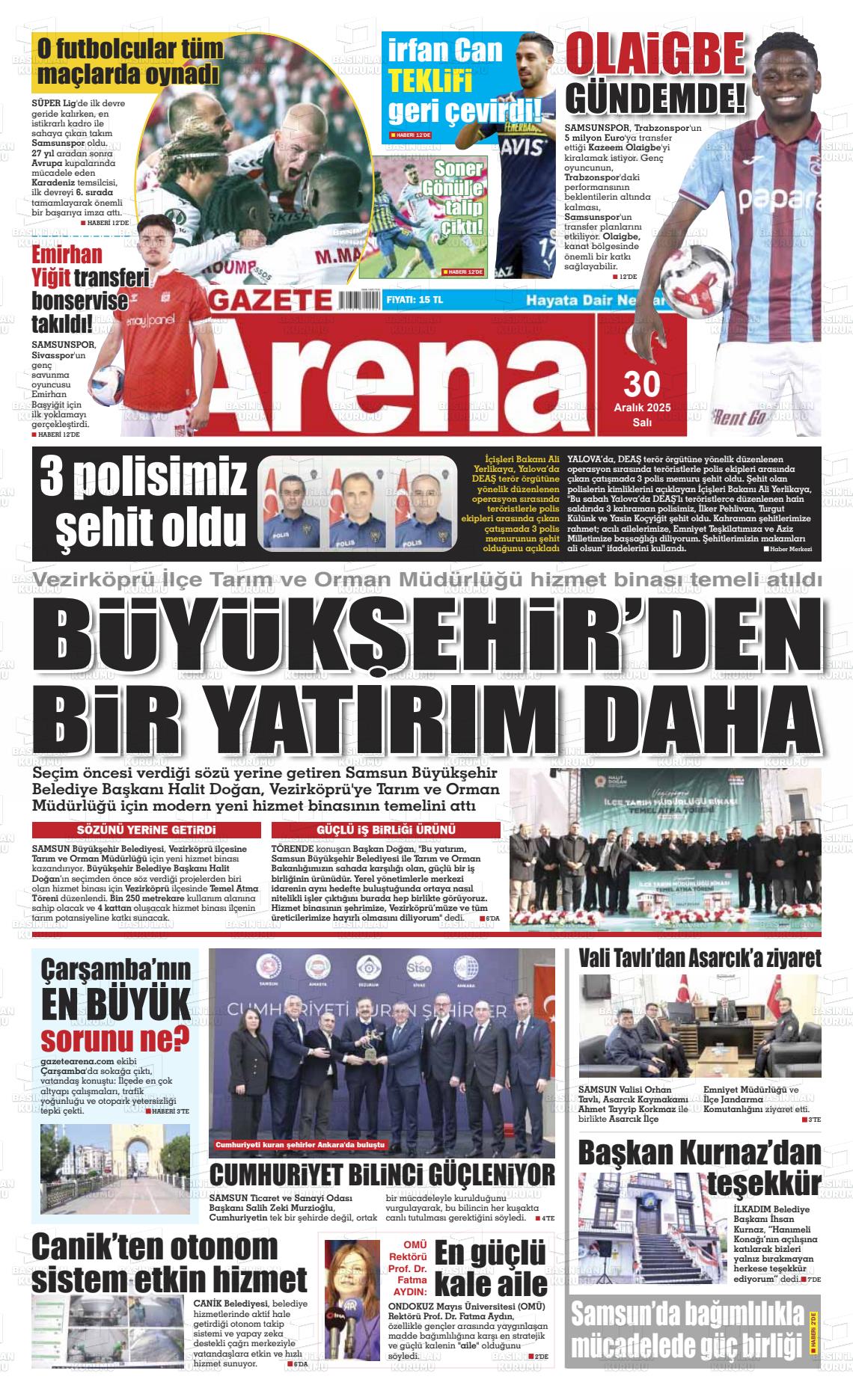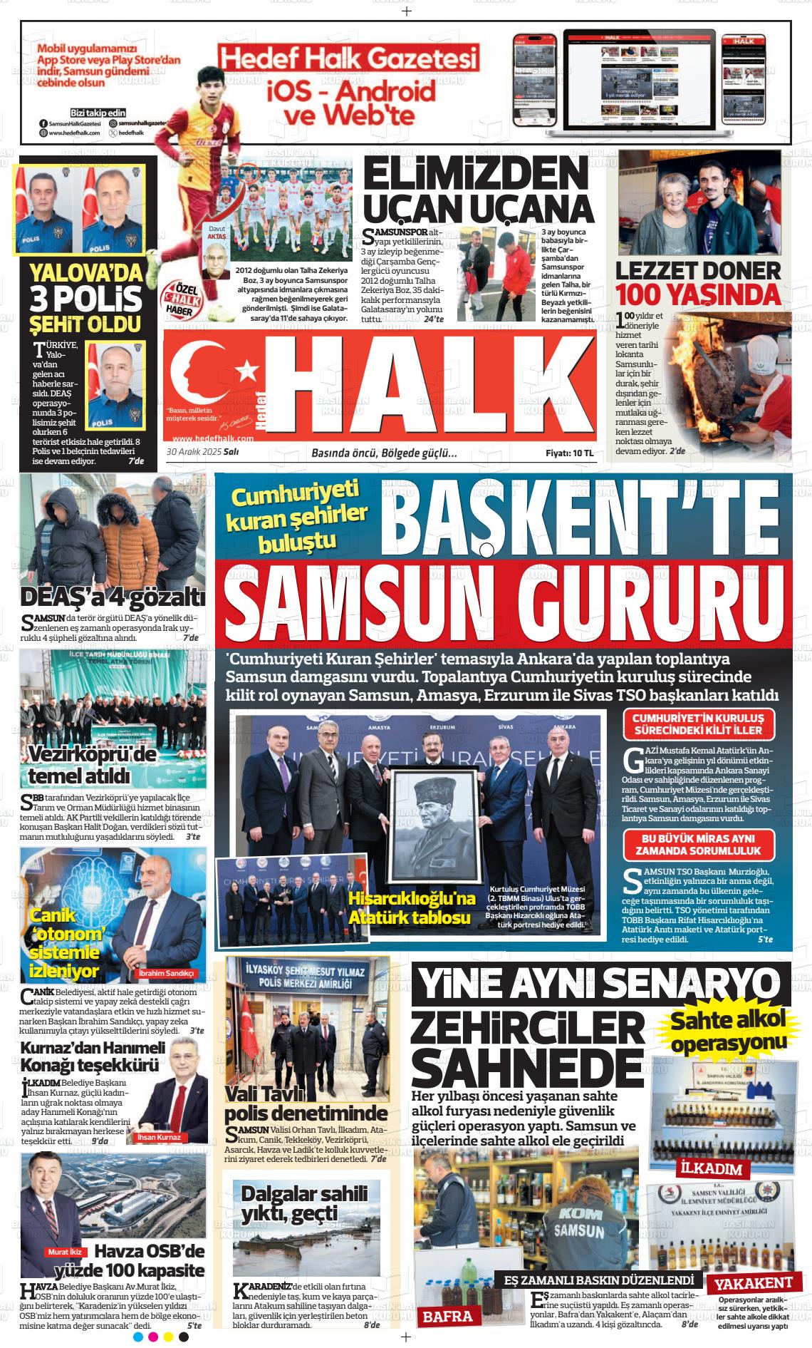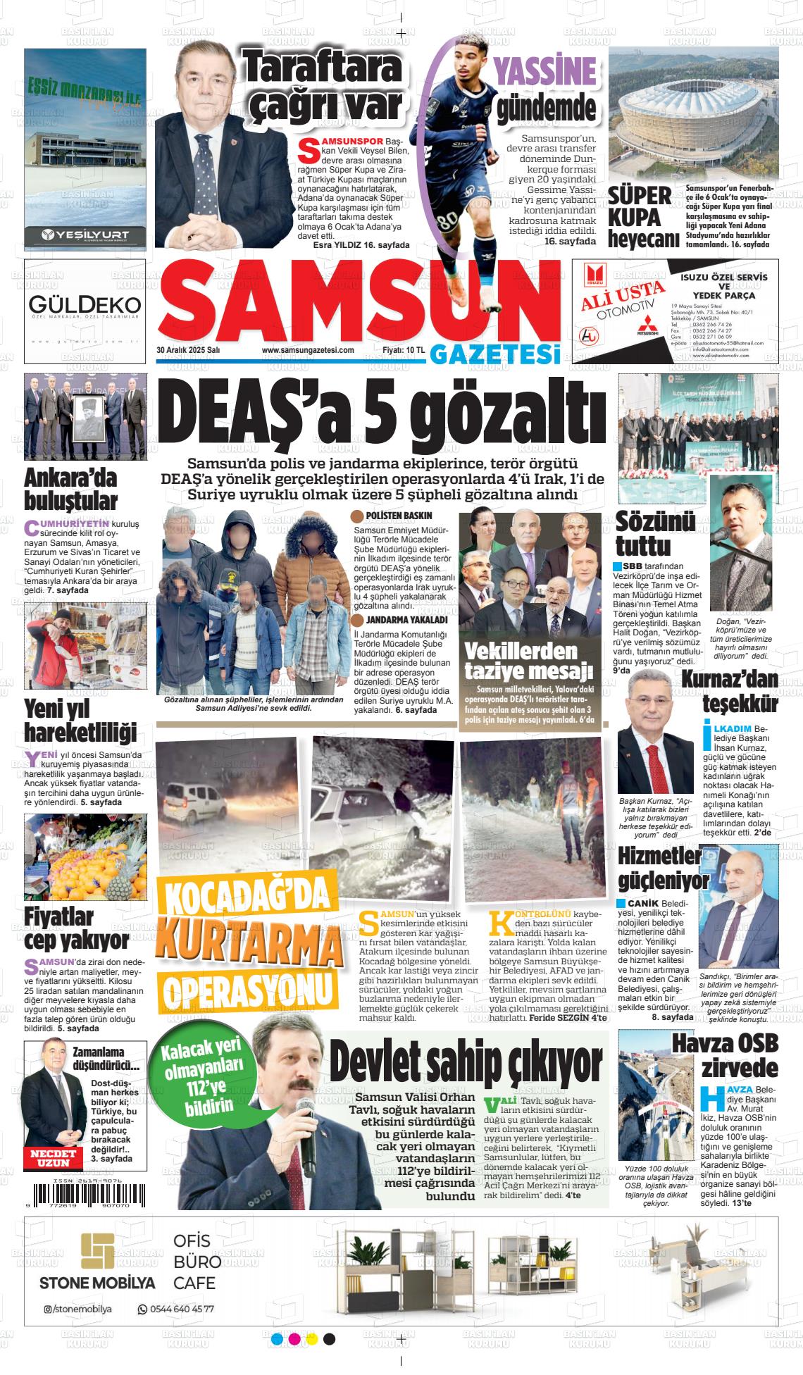 Samsun Yerel Gazeteleri 30 Aralık 2025, Salı Günü Manşeti