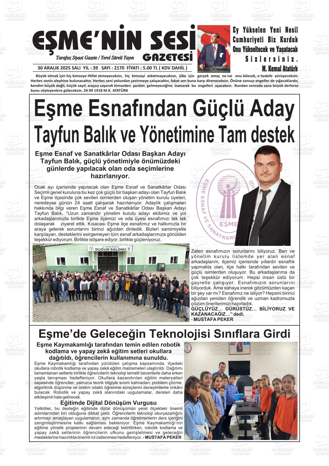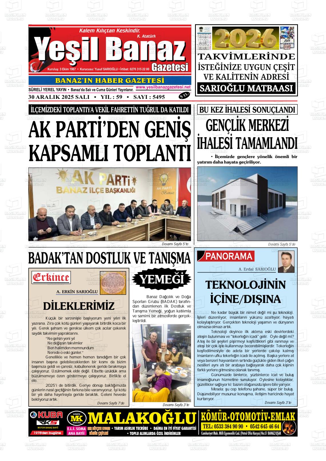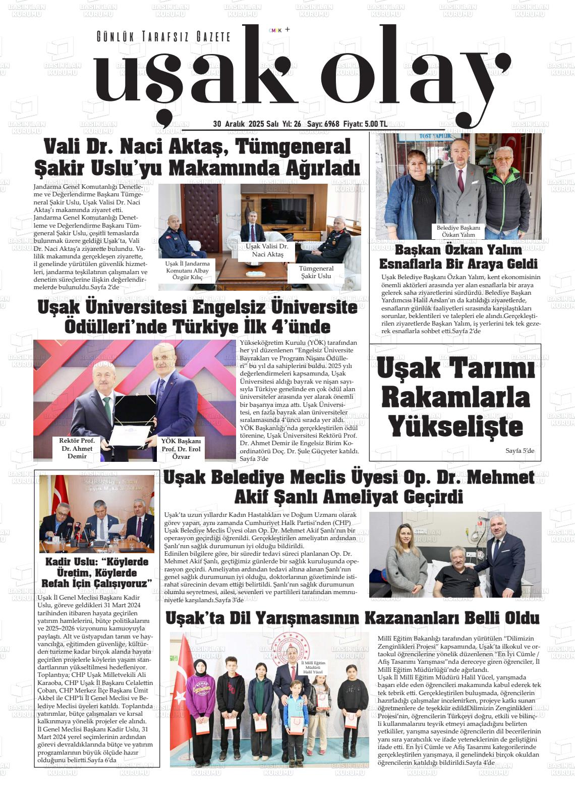 Uşak Yerel Gazeteleri 30 Aralık 2025, Salı Günü Manşeti